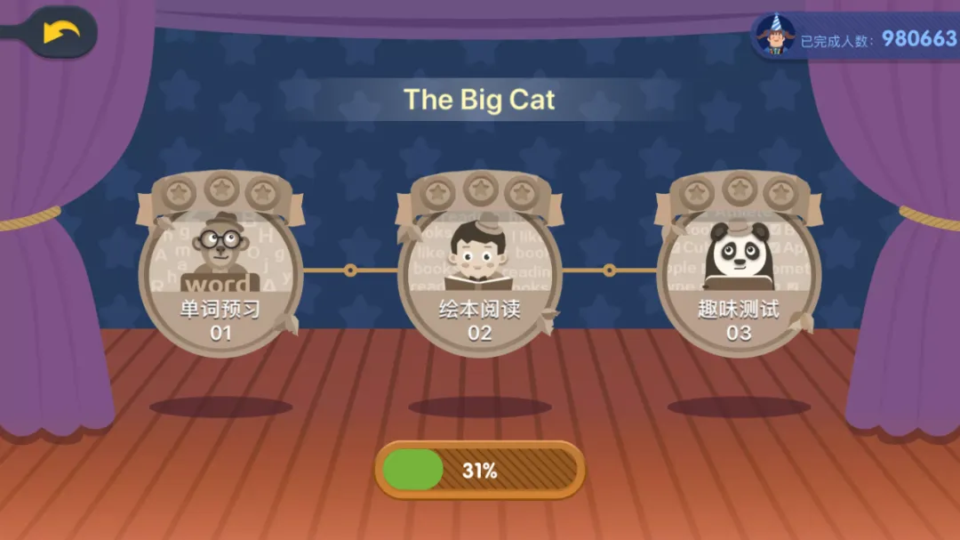 每一个绘本课程都会分为“课前单词预习“、”课中绘本阅读“和”课后习题测试”这三个环节,通过完整的学习闭环提高孩子的学习效果。