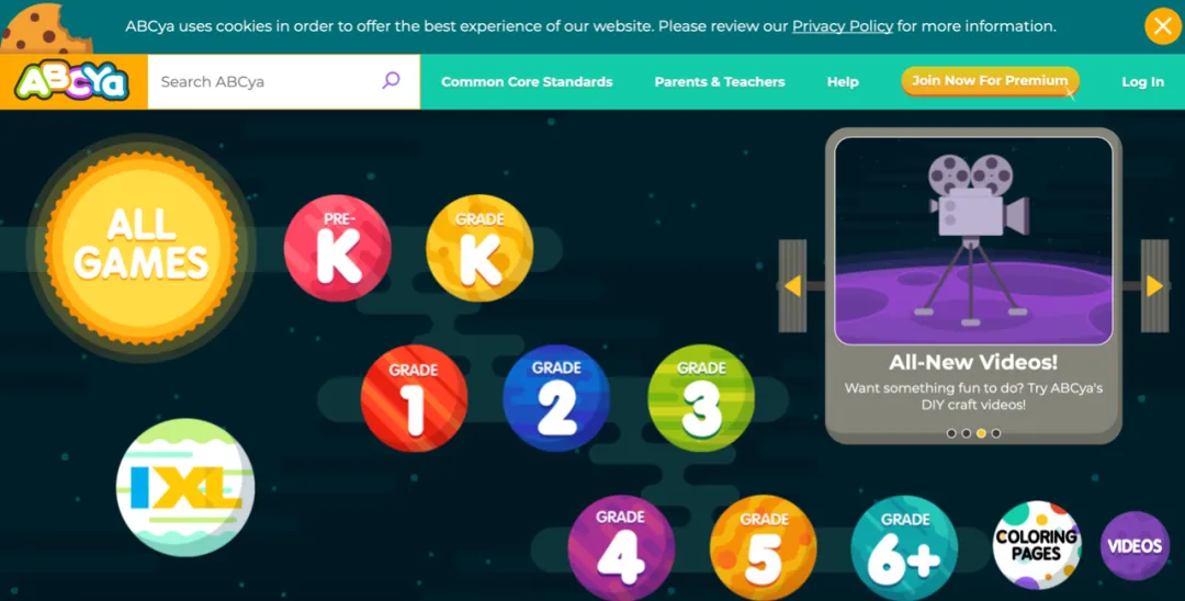 ABCYa是一个专为学前班到小学六年级学生设计的寓教于乐的网站。小朋友以为自己是在用它玩游戏,其实可以不知不觉从中学到很多知识。
