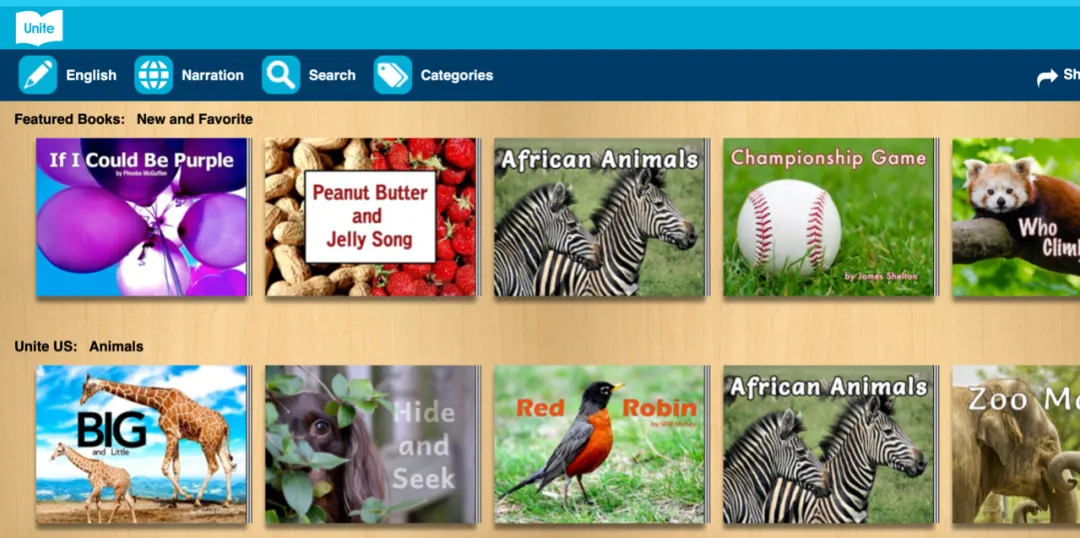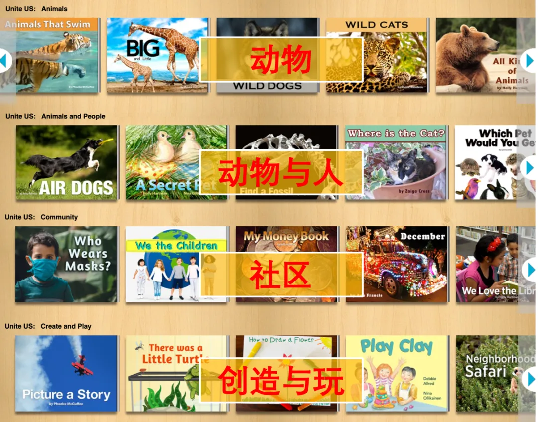 Unite for Literacy的网站里有几百本电子书,适合幼儿园到六年级的ESL(英语作为第二语言)学生使用。绘本选题十分丰富,覆盖了动物、社区、家庭、朋友、科技、健康等十几个主题。孩子们可以从自己感兴趣的主题出发,开启他们的非虚构阅读之旅。