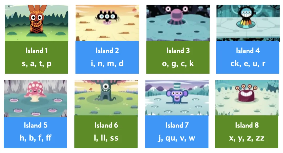 这个网站最大的特点是游戏性特别强。孩子们可以通过扮演小怪兽角色,在不同的闯关游戏中复习巩固自然拼读的知识。
