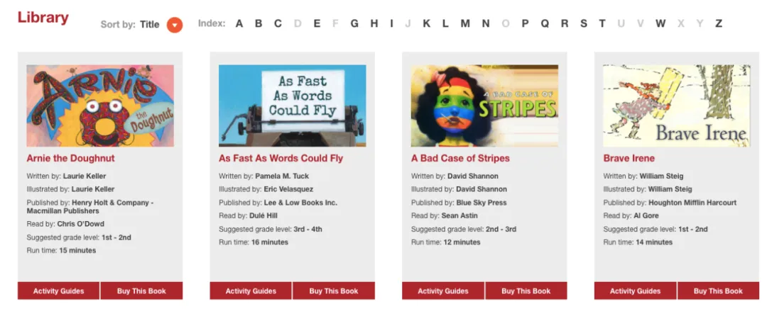 这个网站有三大亮点:一是有好莱坞巨星亲自录制的绘本朗读视频,二是把绘本故事拍成了精彩的绘本动画,三就是每个故事都搭配了非常详尽的教案。