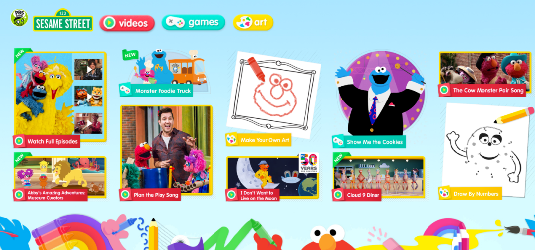 PBS Kids是美国知名电视频道PBS旗下的儿童节目,专为2-9岁儿童设计。其网站资源主要有视频和游戏两种形式,芝麻街、大红狗克利福德、好奇小猴乔治等卡通明星都会在里面出现。