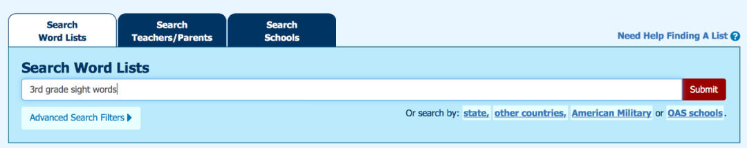 然后,根据自己的需求输入关键词,可以是单词的主题,例如:天气、动物。如果想给一年级的孩子练习高频词,可以输入1st grade sight words。