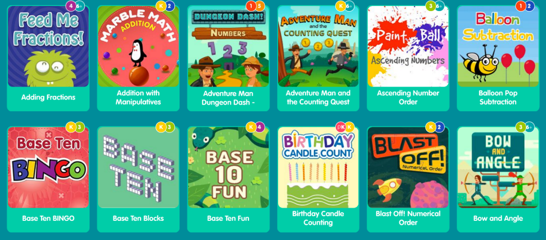 使用时既可以按照年龄和“字母、数字、节日、策略、技能”这几个分类搜索游戏,也可以根据CCSS课程大纲中具体的教学内容进行更有针对性的查找。